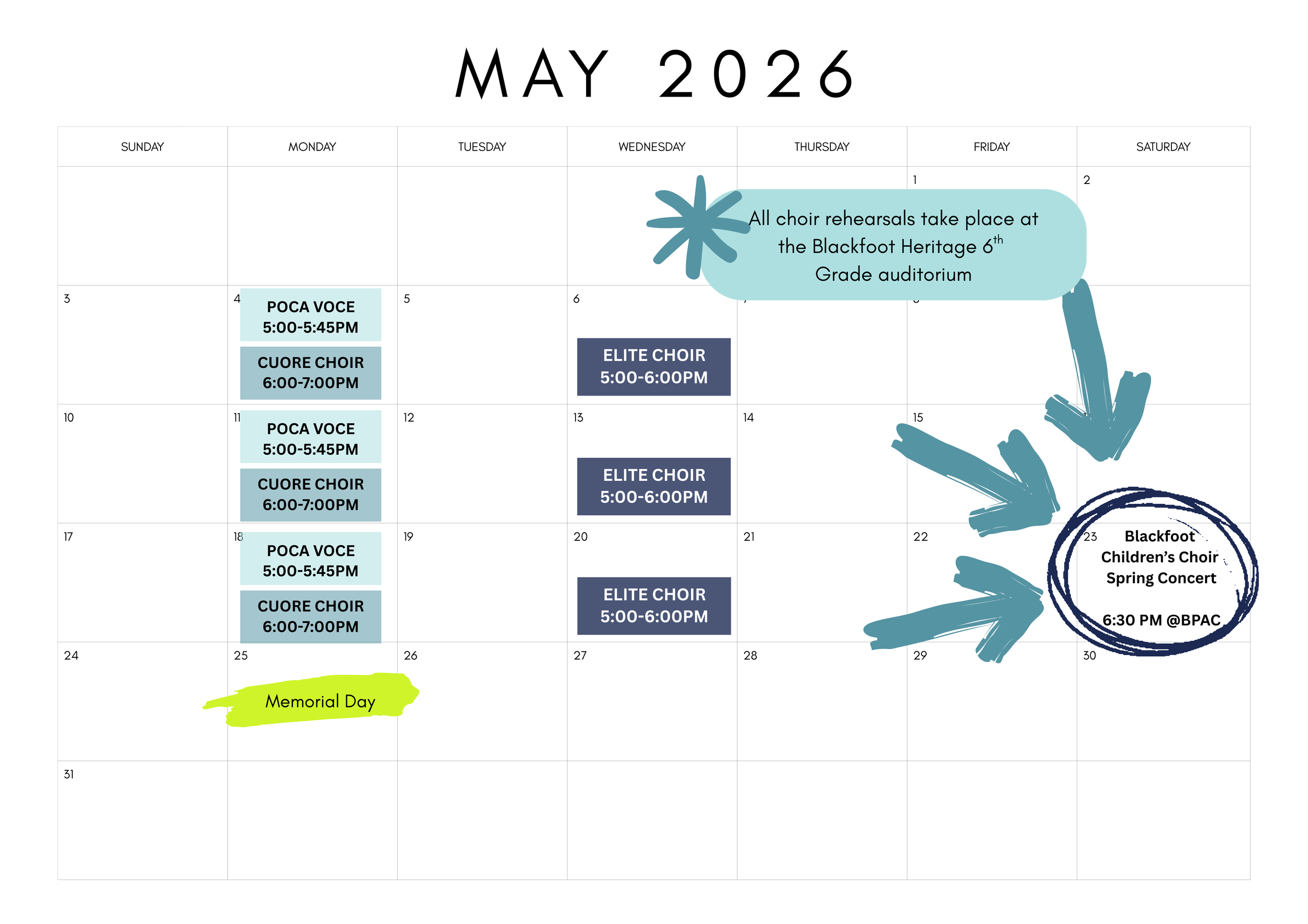 Download and print a copy of the 2026 rehearsal schedule HERE Download and print a copy of the 2026 rehearsal schedule HERE
